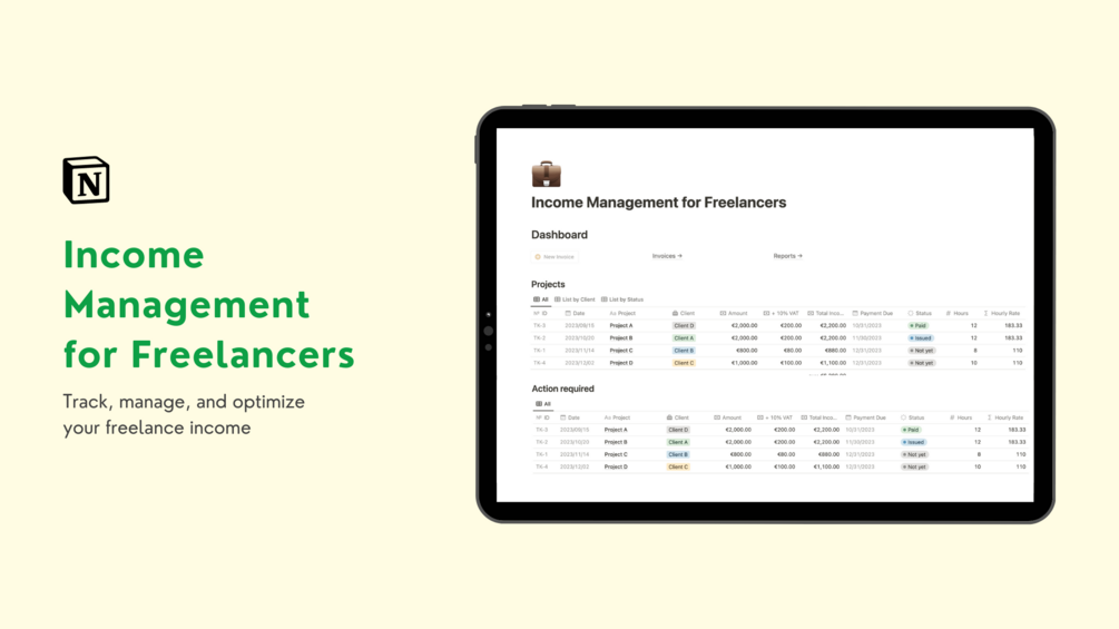 The beauty lies in its simplicity β just work on one database! Add a new line, jot down your info, and track the status effortlessly: issued, paid, or pending. Take control of your income seamlessly πͺ