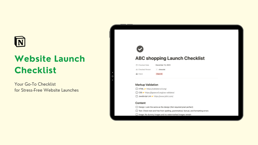 Website Launch Checklist - Notion Template
